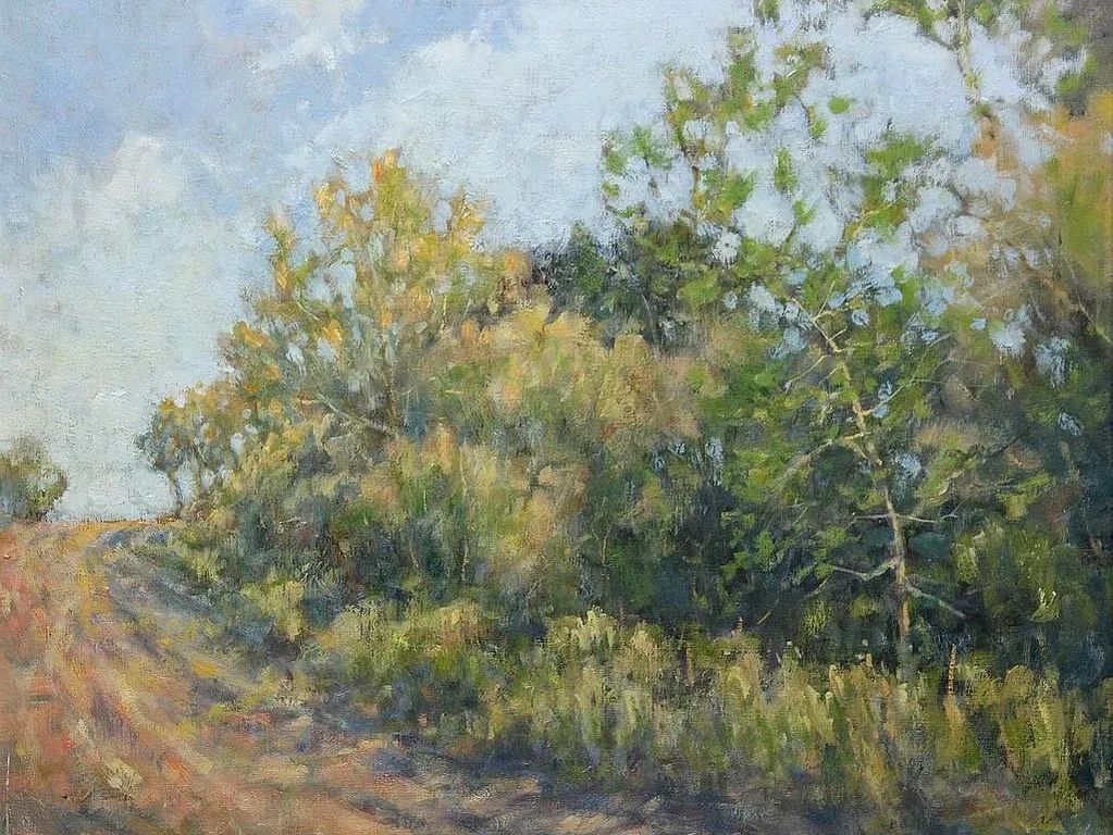 With winter a distant memory I've been out walking on the the edge of town. Soft shades of sunlight glance off emerging trees.